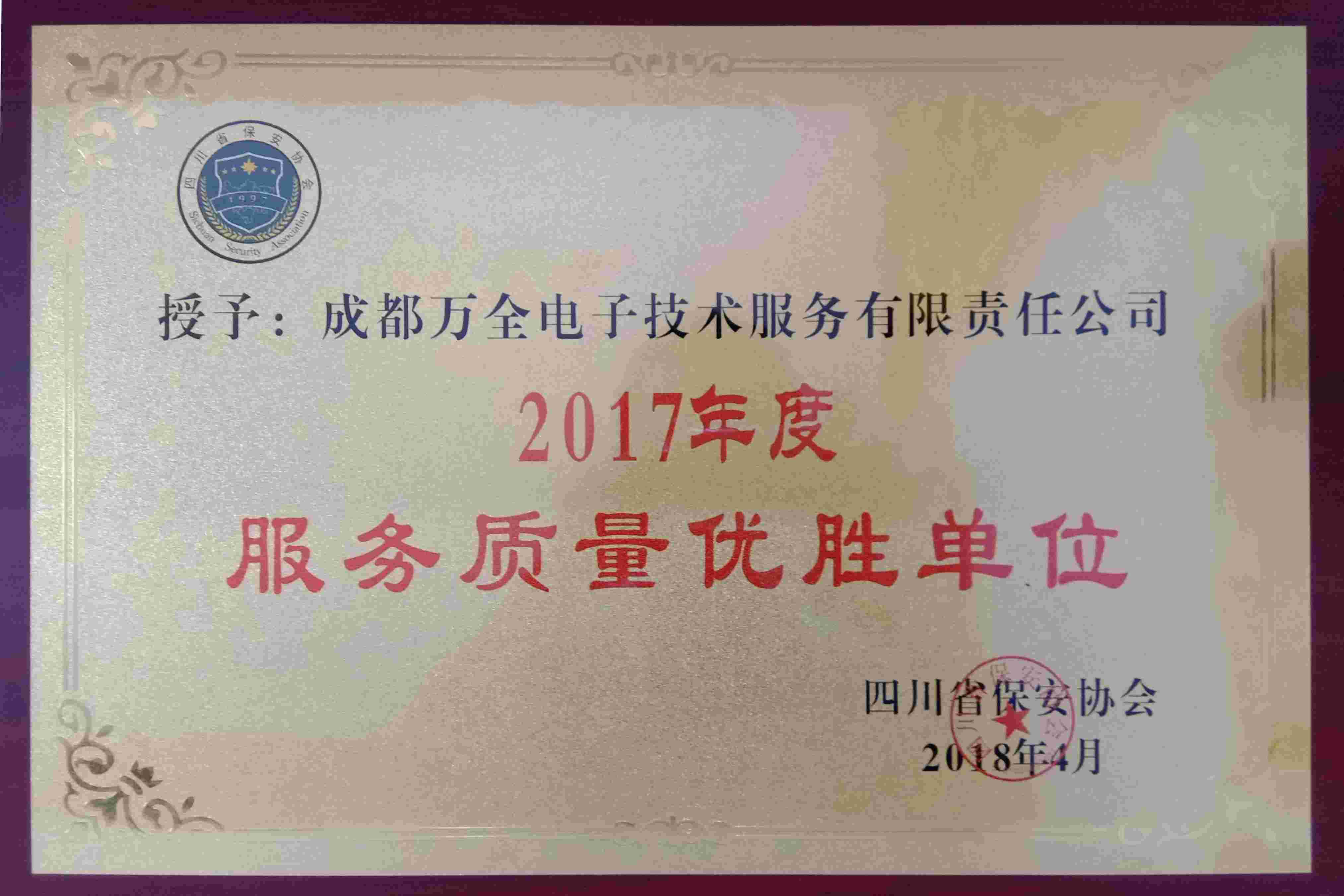 2017年4月四川省安保協會授予成都萬全電子“2017年度服務質量優(yōu)勝單位”稱號