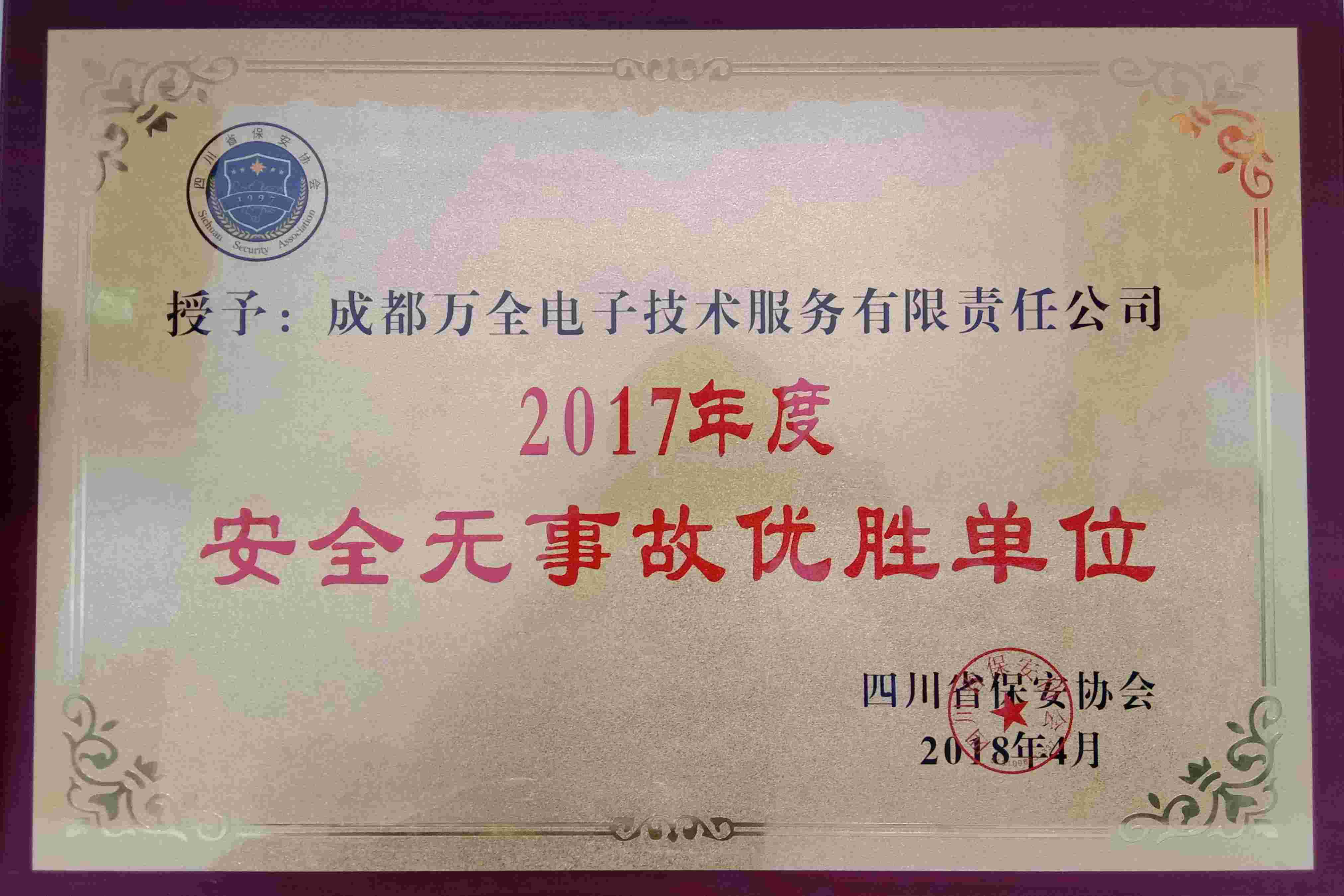 安防集成商成都萬全電子“2017年度安全無事故優(yōu)勝單位”稱號