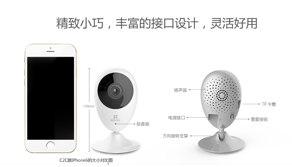 海康螢石C6TC家用云臺(tái)監(jiān)控?cái)z像頭帶移動(dòng)偵測(cè)電話提醒