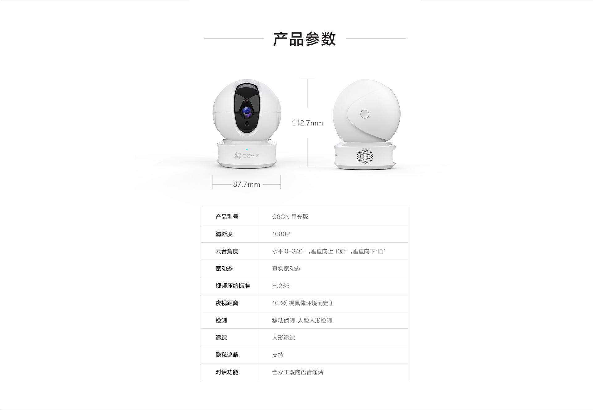 ??滴炇疌6CN星光級(jí)紅外夜視網(wǎng)絡(luò)攝像頭,可360度全方位監(jiān)控、雙LED紅外燈10米夜視距離、人臉人形偵測(cè)追蹤、一鍵鏡頭遮蔽隱私保護(hù)。